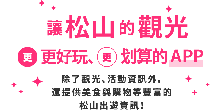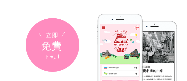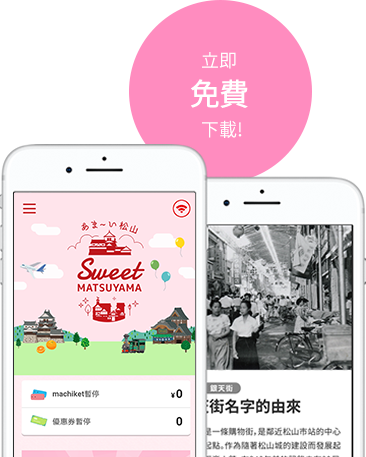 Sweet 松山 APP 有提供只要註冊電子郵件信箱,便能簡單連接利用免費 Wi-Fi 網路的功能。敬請您於松山期間使用智慧型手機時,多加利用。